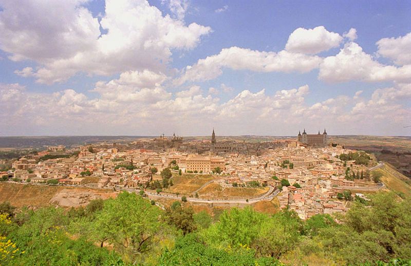 右の大きな建物がアルカサル 左の鐘楼がカテドラル広く見えるがマドリードから日帰り観光も可能