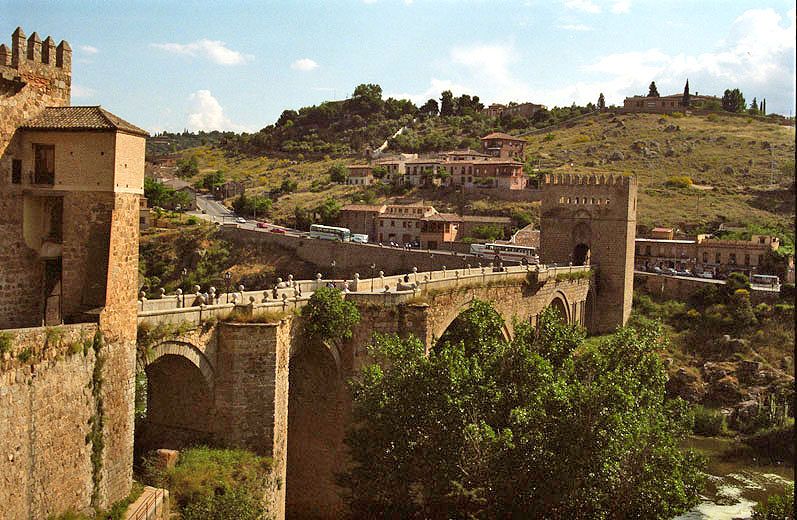 旧市街から見たサン・マルティン橋14世紀に建築された要塞のようなゴシック様式の石橋タホ川に架かる27mのアーチは圧巻