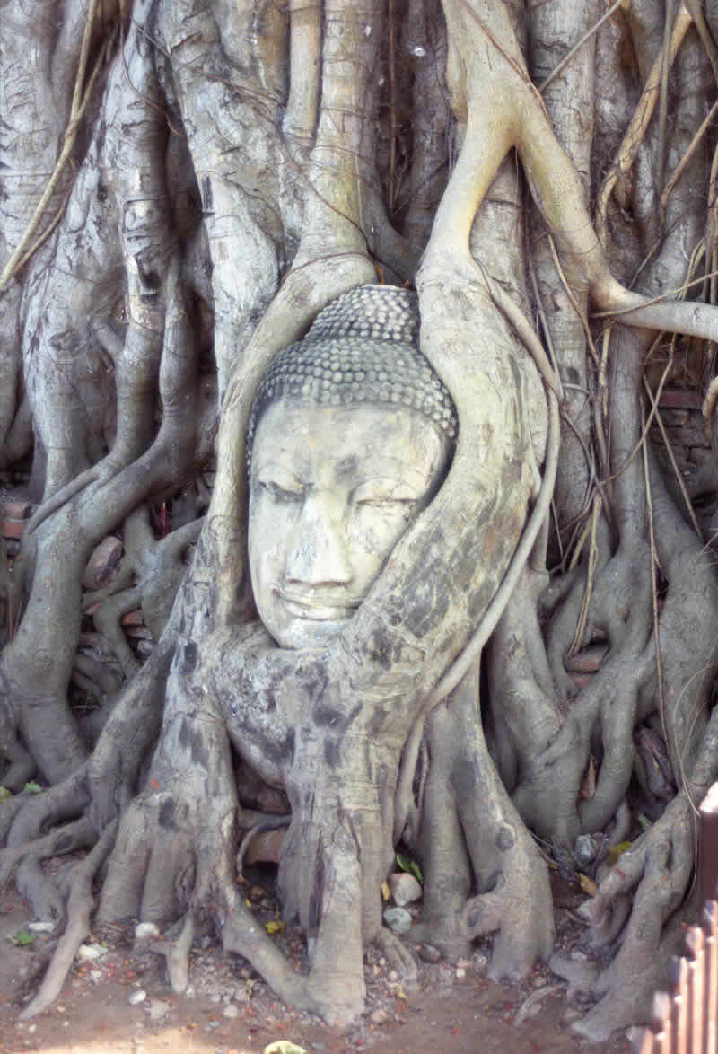 木の根に取り込まれた仏頭 |