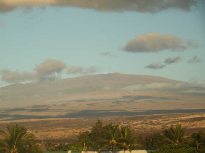 ワイコロアから見た夕方のマウナ・ケア |