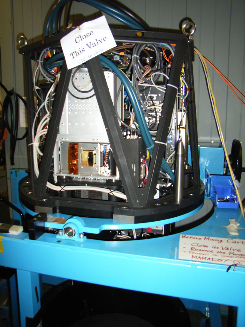 搬入されてきたばかりのレーザーガイド星照射装置 2006年11月20日 この装置を用いたファーストライトに成功しました |