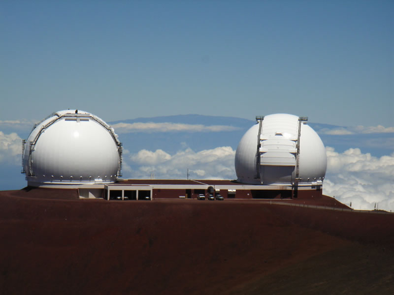 すばる望遠鏡(中央)とKeck望遠鏡(右) |