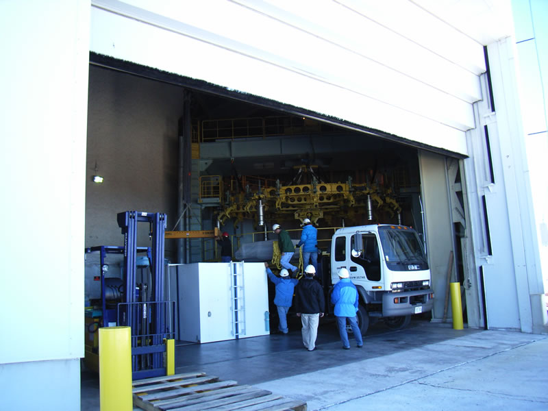 搬入作業中のレーザーガイド星照射装置 |
