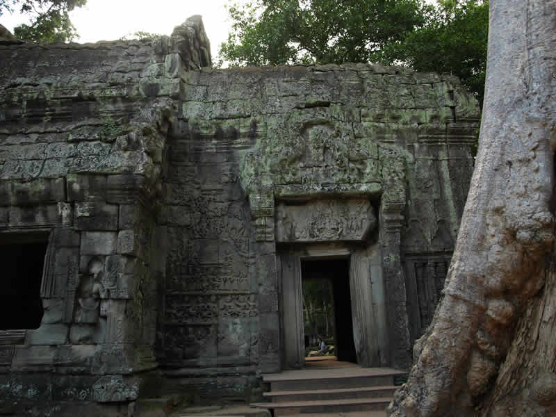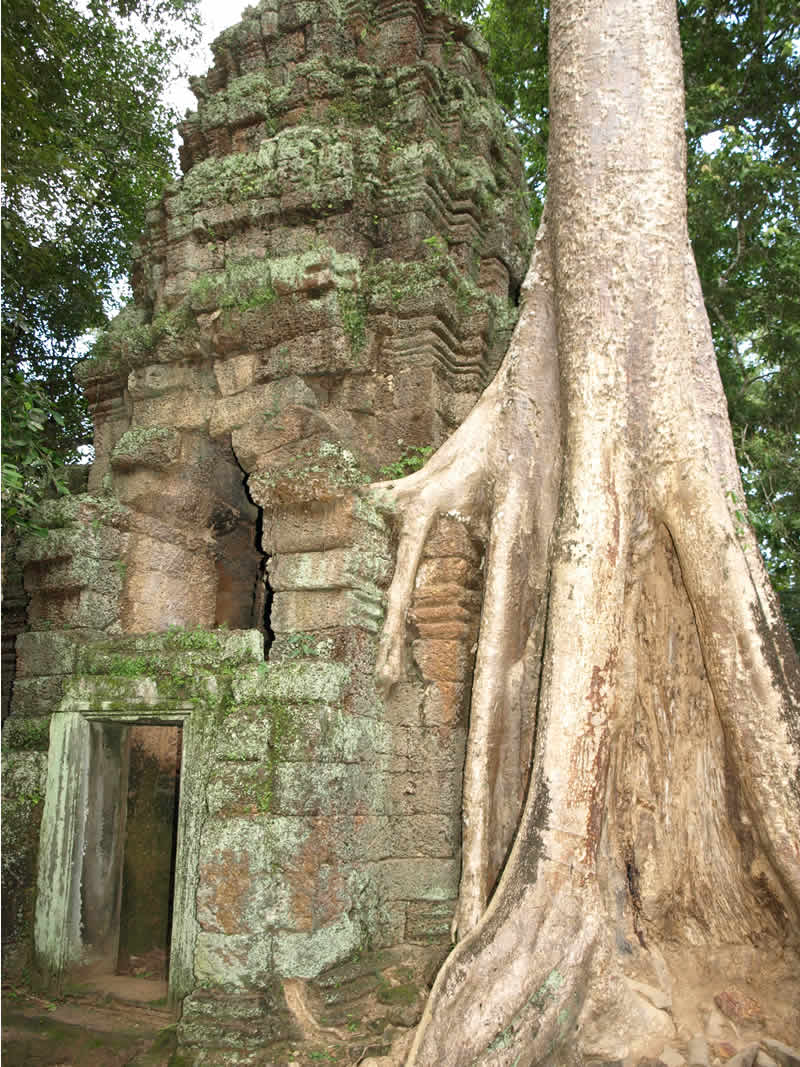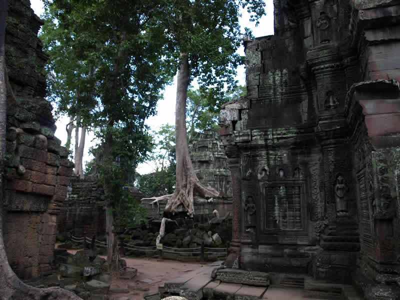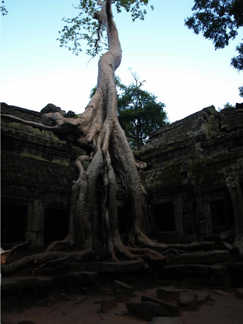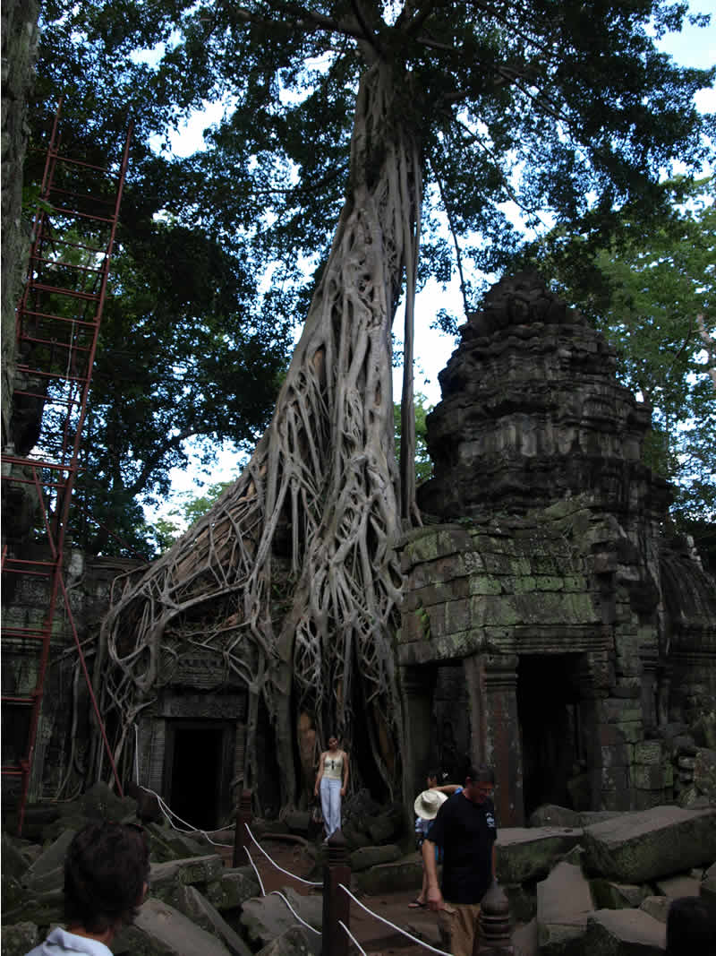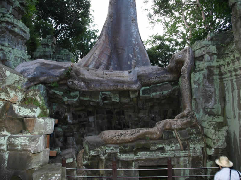 ![]() 東門の回廊を押さえつけるスポアンの木(ガジュマルの仲間) |