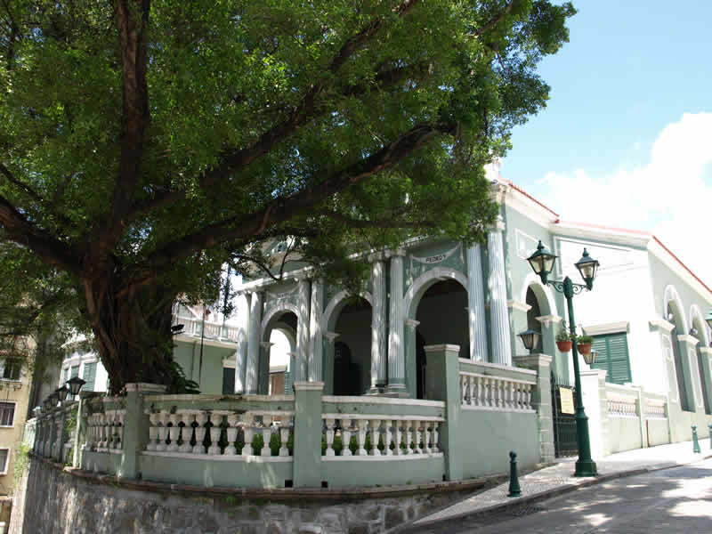 正面の緑色の建物が「ドン・ペドロ5世劇場」