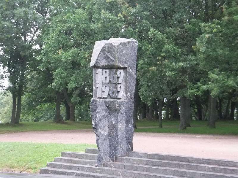 最初に開催された1869年から100年後の1969年に建立された記念碑 |