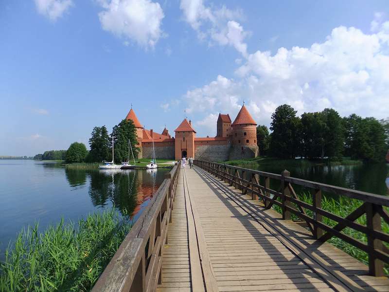 ![]() トラカイ城の本丸 今は水の無い堀に架かる橋を渡って内部へ |