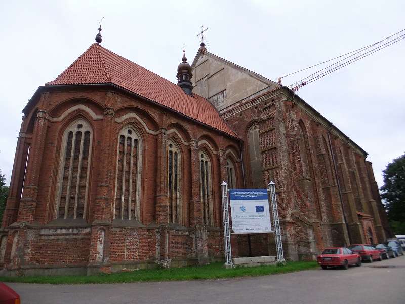 ![]() カウナス城に隣接する修復中の聖ギオルギ教会 ロシア占領時代に数多くあったステンドグラスはすべて外され煉瓦で塞がれてしまった |