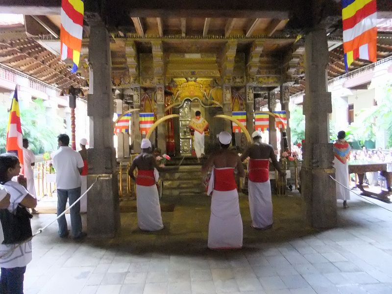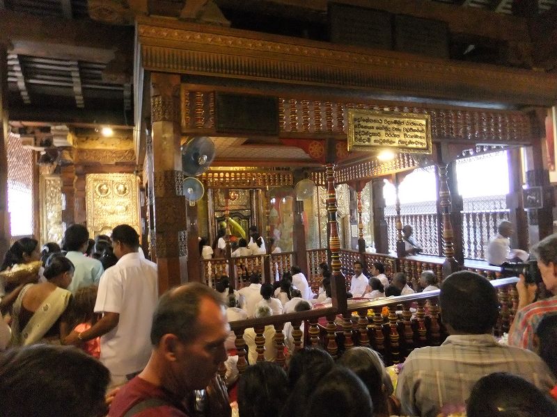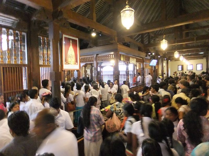 本堂の2階で、1日3回しかない仏歯が祀られている部屋の開扉を待つ人たち |
