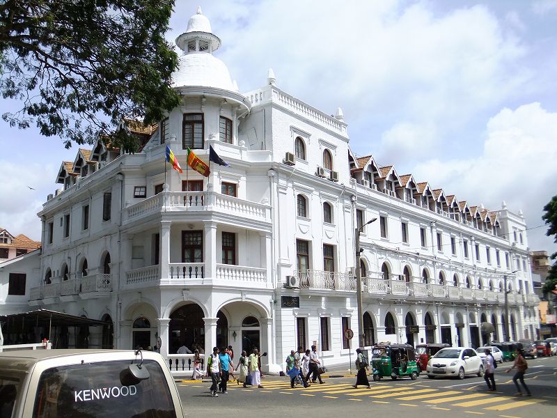 仏歯寺の前にあるスリランカでもっとも有名なコロニアルホテル「クイーンズホテル」 |