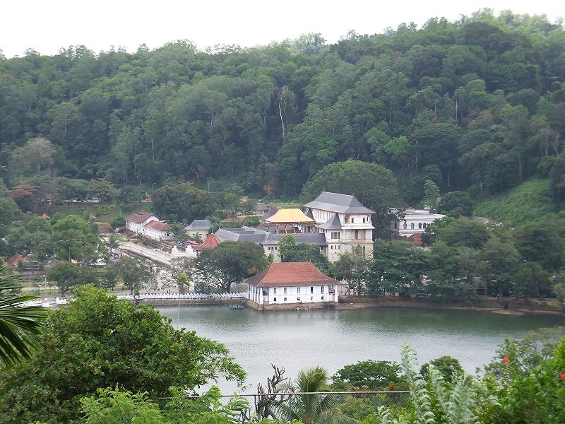 キャンディ湖を挟んだ丘の上から見た「仏歯寺」 |